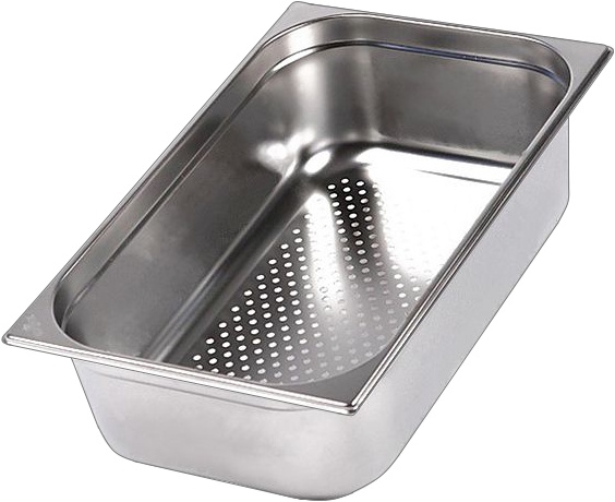 Перфорированная гастроёмкость HURAKAN GN-P 2/3-65 предназначена для приготовления различных блюд на пару, выпечки, промывки и сушки продуктов. Отверстия расположены только на дне ёмкости. При приготовлении пищи на пару он равномерно распределяется по всему объему рабочей камеры, благодаря чему продукты готовятся быстрее. Изготовлена из нержавеющей стали.