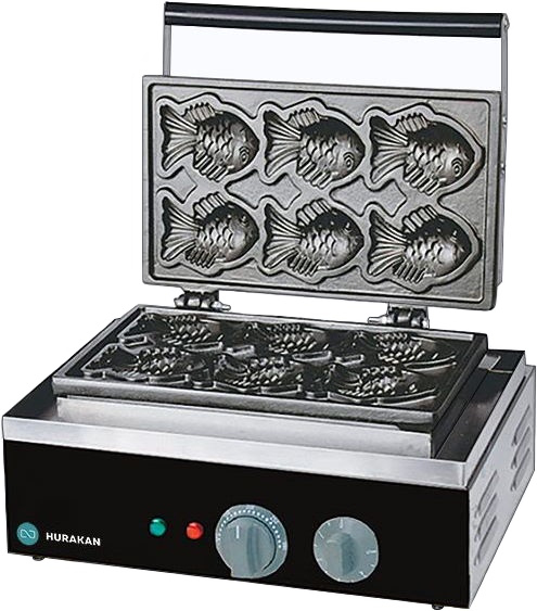 Электрическая вафельница тайяки HURAKAN HKN-GES6F предназначена для выпекания вафель в форме рыбок. Имеет 1 рабочую поверхность с 6 формами для вафель.
