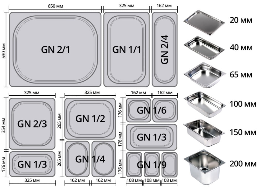 | Размер гастроёмкости | GN 1/1 (530х325 мм) |