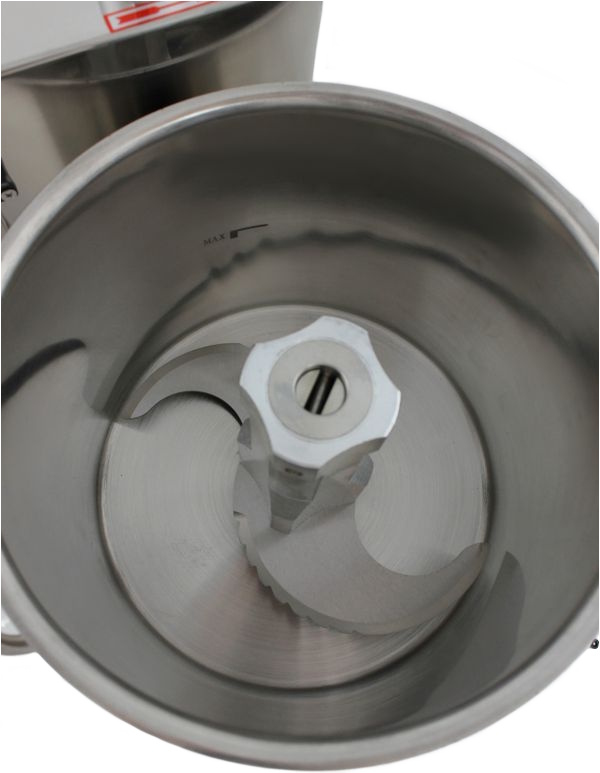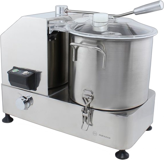 Регулирование скорости вращения ножа позволяет получать разные варианты готовой продукции: крупно-, средне-, мелкорубленную, мусс, суфле и паштет. Боковое расположение чаши позволяет избегать нагрева продукта от работающего двигателя. Чаша имеет крышку. Корпус и чаша выполнены из нержавеющей стали. Используется на предприятиях общественного питания и торговли.