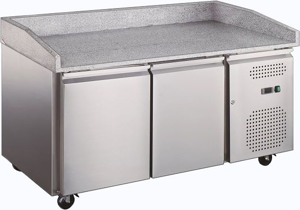Холодильный стол для пиццы HURAKAN HKN-PZG2 предназначен для раскатки теста, приготовления и разделки ингредиентов, а также для хранения заготовок для пиццы на предприятиях общественного питания и торговли.