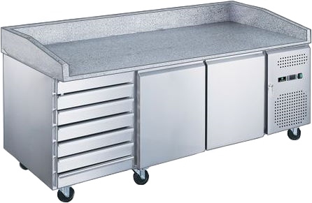 Холодильный стол для пиццы HURAKAN HKN-PZG3-116 предназначен для раскатки теста, приготовления и разделки ингредиентов, а также для хранения заготовок для пиццы на предприятиях общественного питания и торговли. Динамическая система охлаждения обеспечивает равномерное распределение температуры по всему объёму камеры.